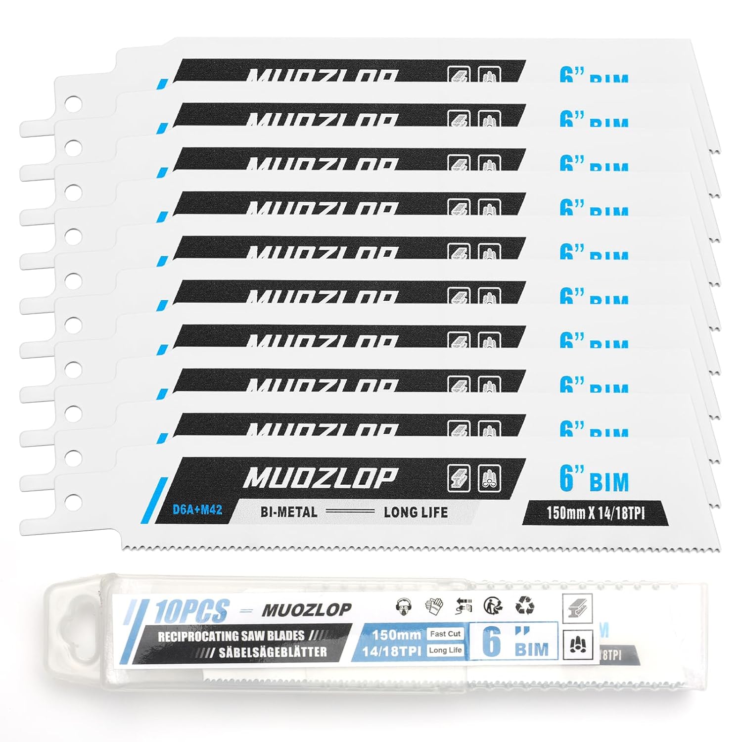 10 Pack 6inch Reciprocating Saw Blades Set,14/18 TPI High Carbon Saw Blades, Metal Saw Blades with Organizer Case (10, 14/18TPI/150mm)