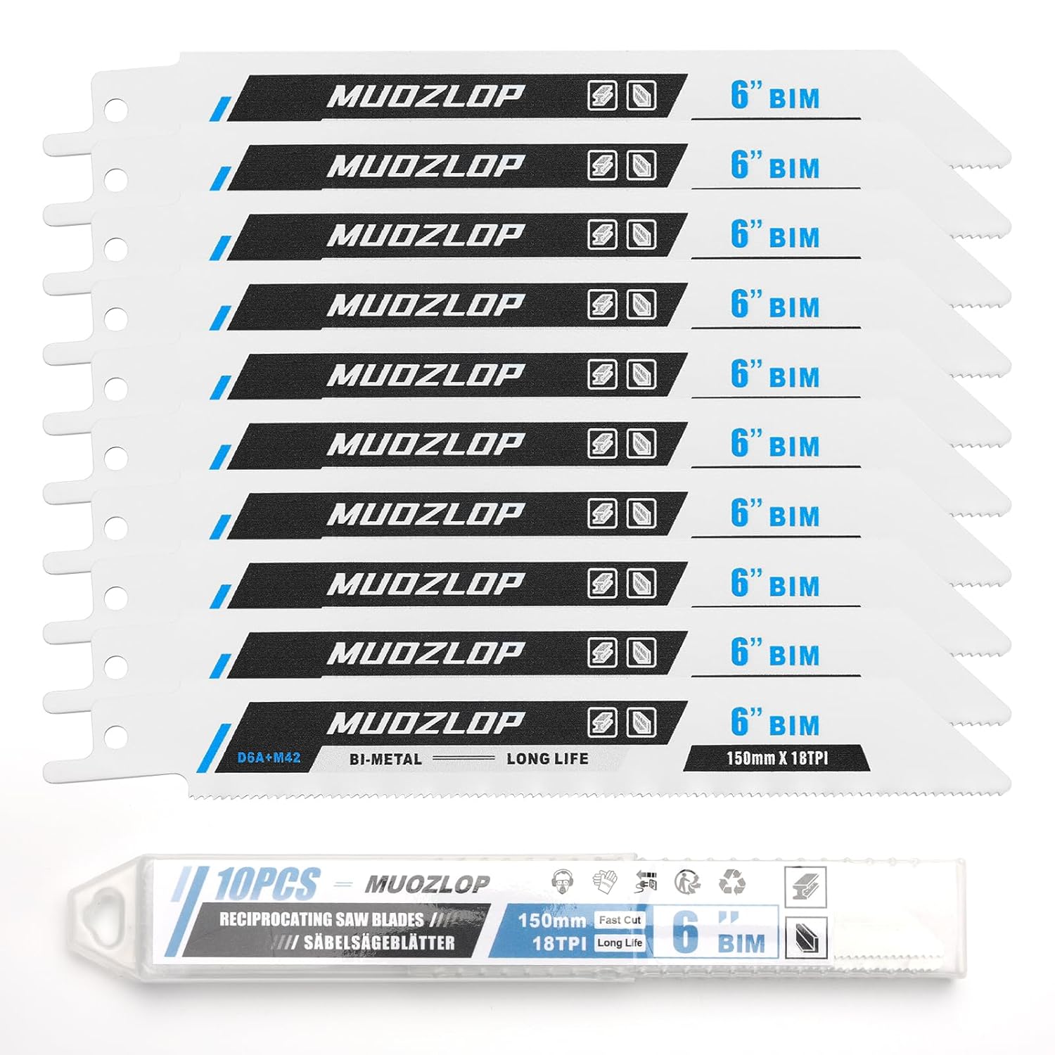 10 Pack 6inch Reciprocating Saw Blades Set,18 TPI High Carbon Saw Blades, Metal Saw Blades with Organizer Case (10, 18TPI/150mm)