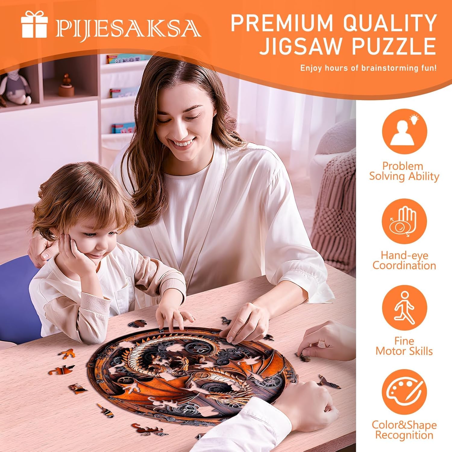 - π¦ Mechanical Dragon-1 Themed Puzzle Set - This puzzle depicts a vicious dragon in front of the mechanical background. The wood puzzle is cut into unique shapes to give you an interesting experience. Wooden toys bring quiet beauty!