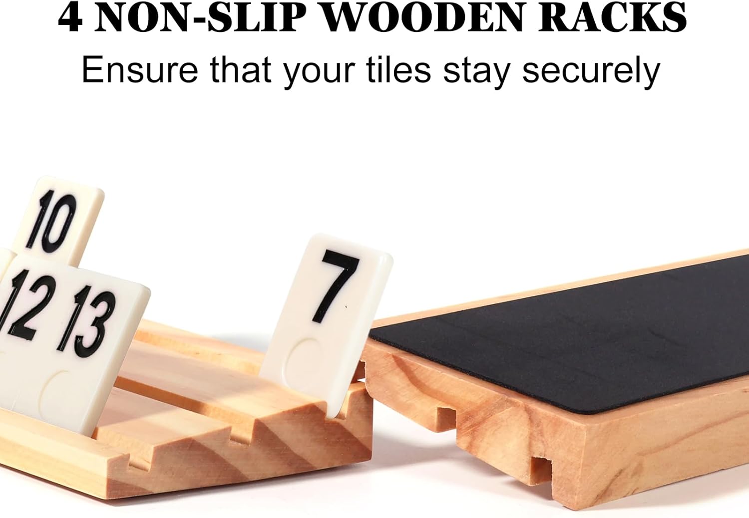 - UPGRADE YOUR EXPERIENCE: Enjoy 6 non-slip racks crafted from pine wood, showcasing the natural grain of the tree. These sturdy racks ensure that your tiles stay securely in place, enhancing your game play