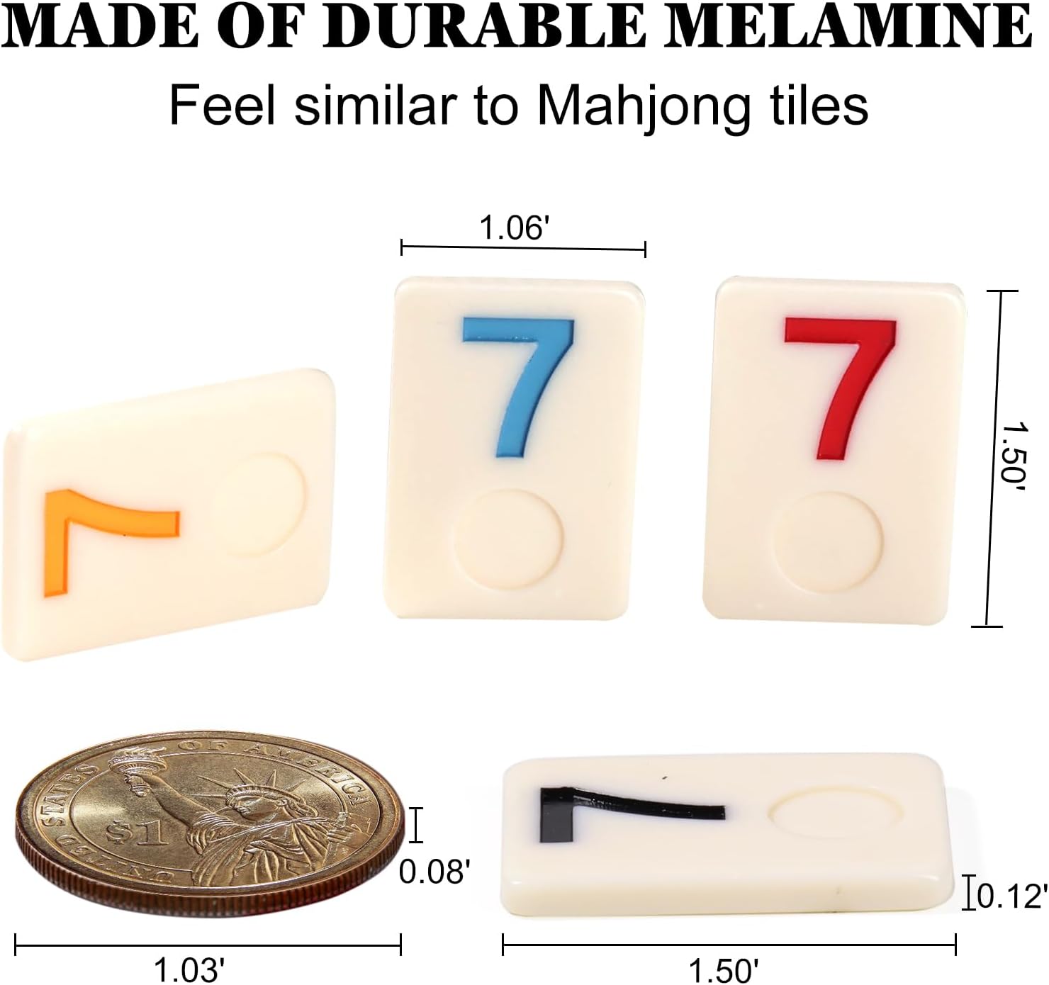 - MATERIAL: The tiles are made of high-quality, durable melamine, feel similar to Mahjong tiles, adding to the tactile enjoyment of the game. Tiles measure 1.50' x 1.06' x 0.12', easy to pick up