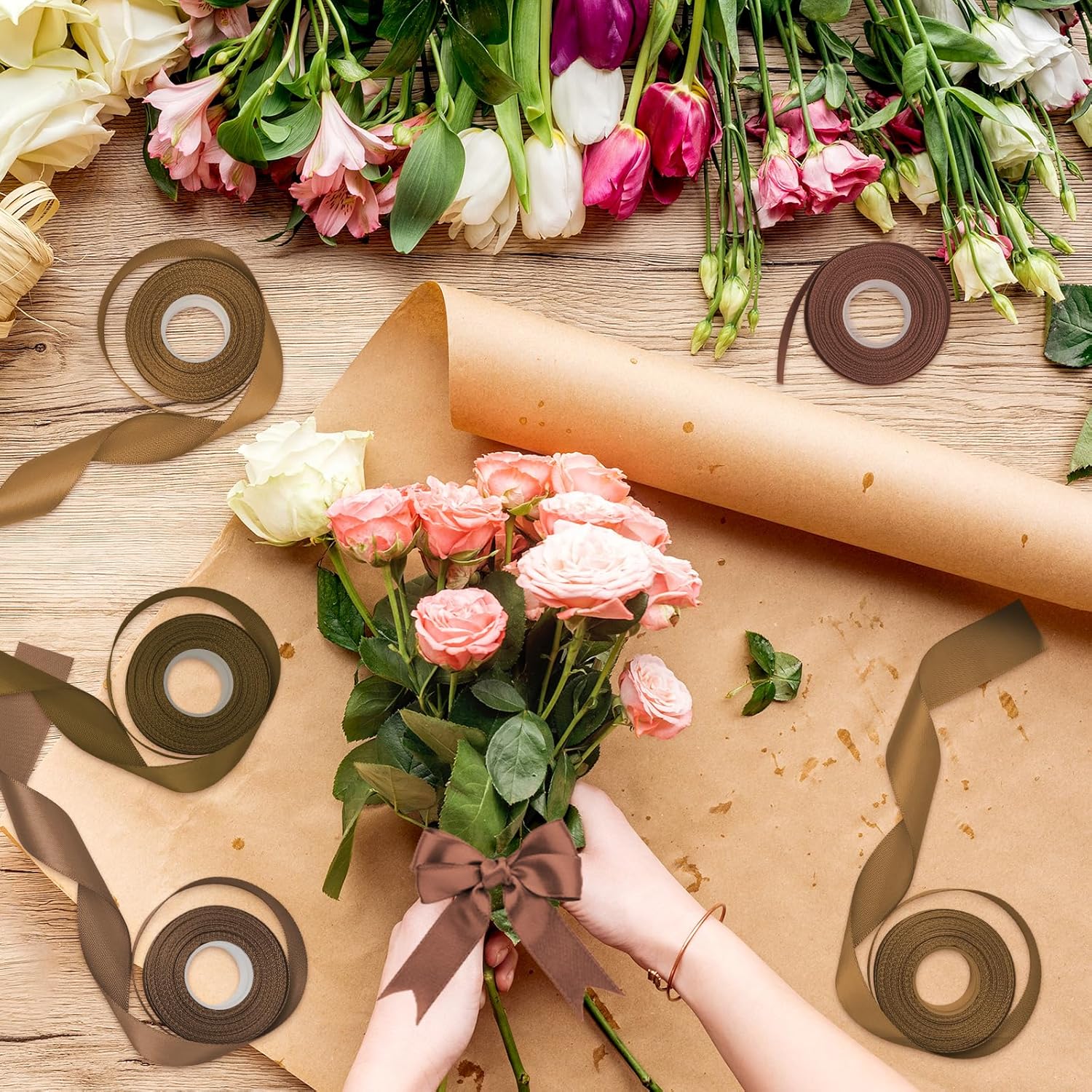 - 【What's Include】:6 rolls 1 inch wide single-faced brown ribbon measures 10 yards (30 feet) each roll, 60 yards (180 feet) in total
