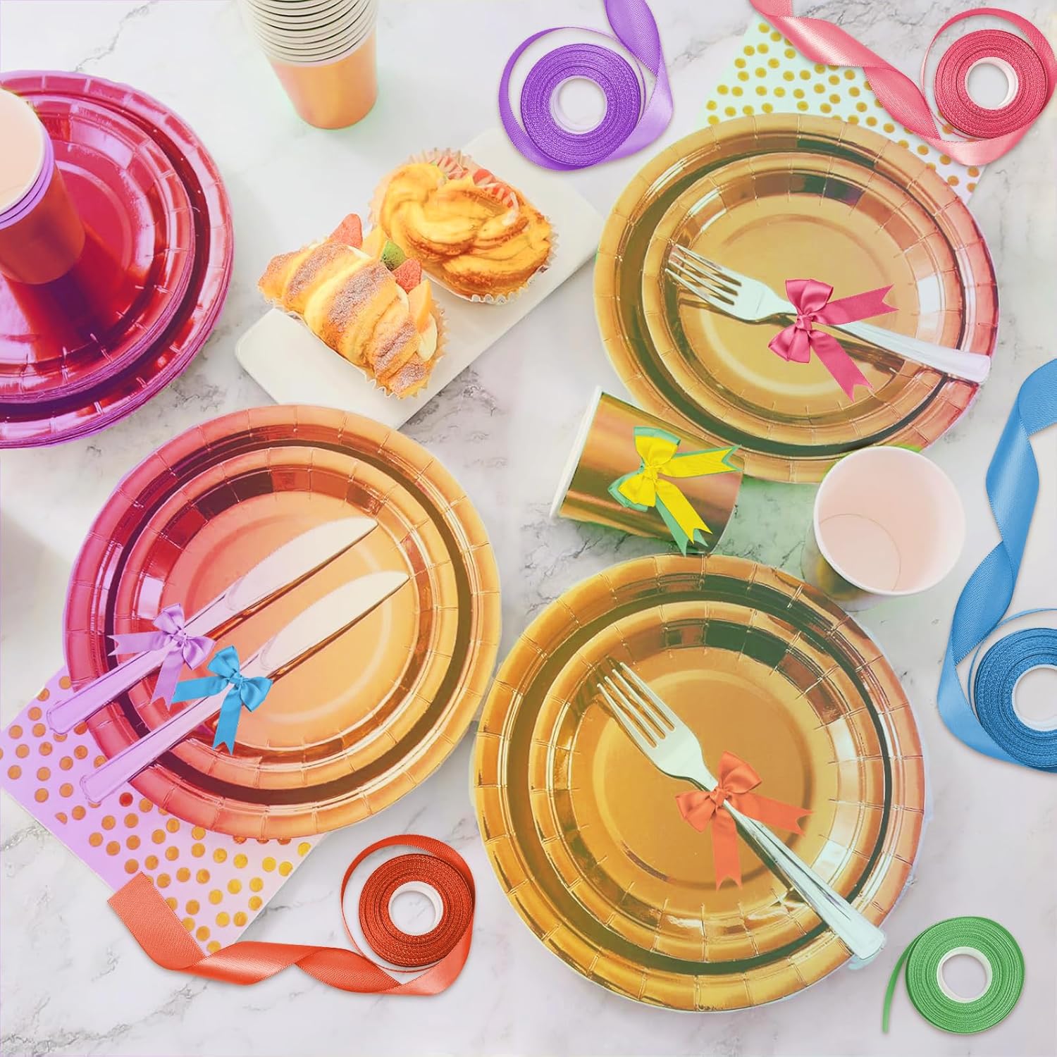 1 Inch Rainbow Satin Ribbons for Crafts, 6 Rolls Single-Faced Rainbow Assorted Ribbons for Gift Wrapping Flower Bouquet Wedding Invitations Bridal Shower Hair Bows Garland Party Decor
