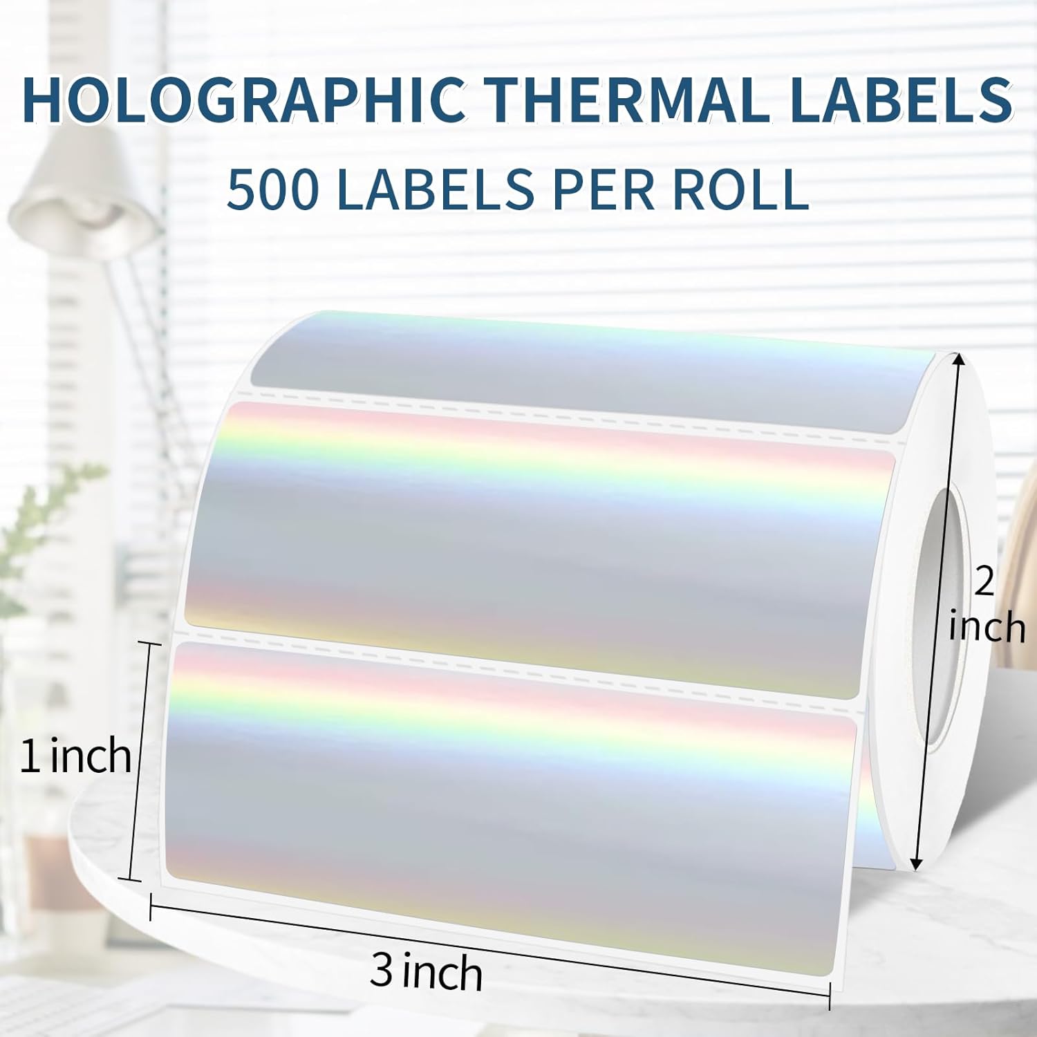 1" x 3" Holographic Thermal Label Stickers,Printable Rainbow Glitter Thermal Printer Sticker Labels for Gift Wrapping, Self-Adhesive Name Price Tag DIY Custom Logo Design (500 pcs)
