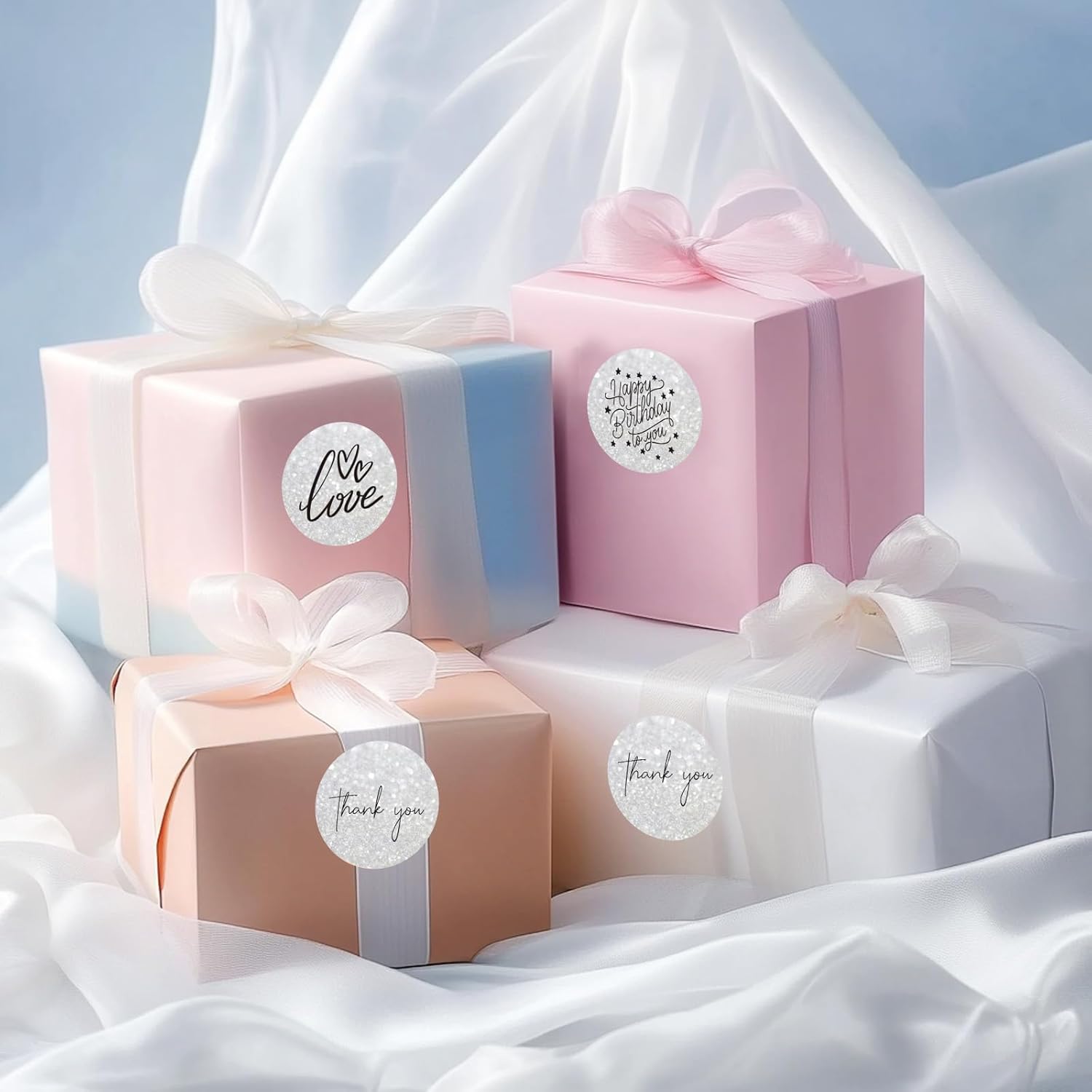 1.5" Holographic Direct Thermal Label Stickers, Round Printable Rainbow Glitter Thermal Printer Sticker Labels for Gift Wrapping, Self-Adhesive DIY Custom Logo Design- Glitter Silver
