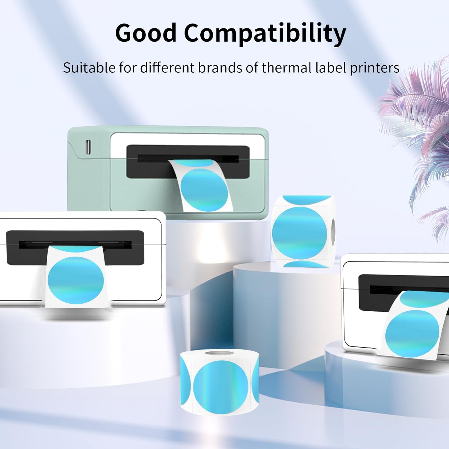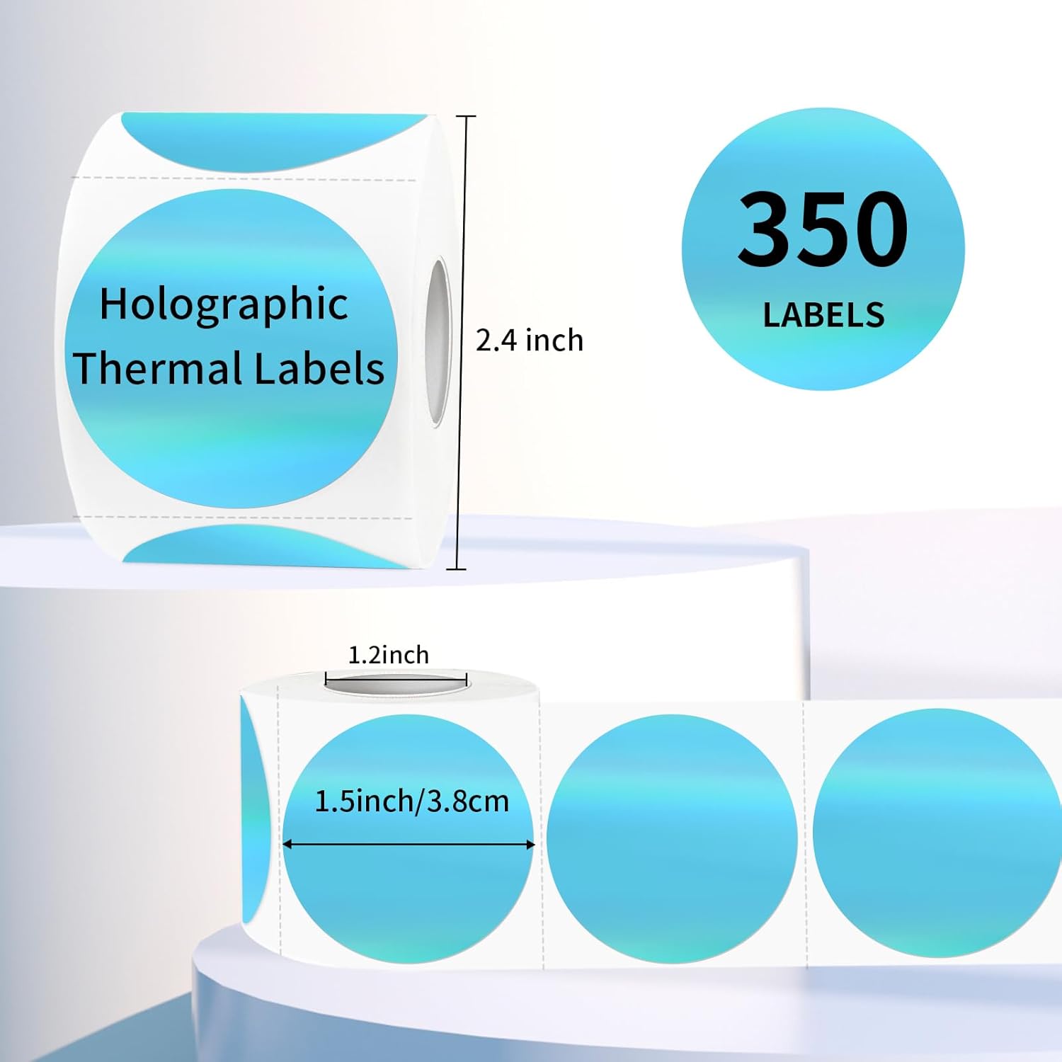 - Package: Circle Holographic Blue Thermal Sticker Labels 1.5", 350 Labels/Roll. It’s printable with a thermal printer, No ink toner or ribbons are needed
