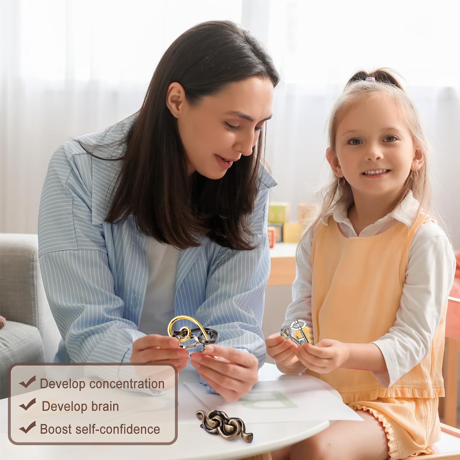 • 【BRAIN TEASER PUZZLES】These cleverly designed puzzles are perfect for all ages, promoting lateral thinking and creativity. They help seniors exercise their brains, improve concentration and problem-solving skills in children and adolescents, and support individuals with ADHD by boosting focus and confidence