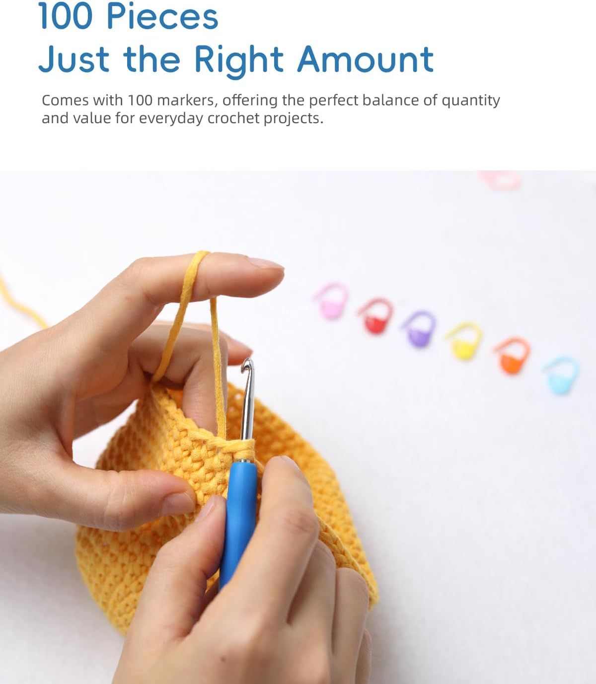 - 【100 Markers with Handy Storage】Includes 100 high-quality crochet markers and knitting stitch markers, plus a clear 3.3 x 0.6 inch storage case—keeping your crochet kit, knitting kit, or sewing supplies neatly organized and travel-ready.