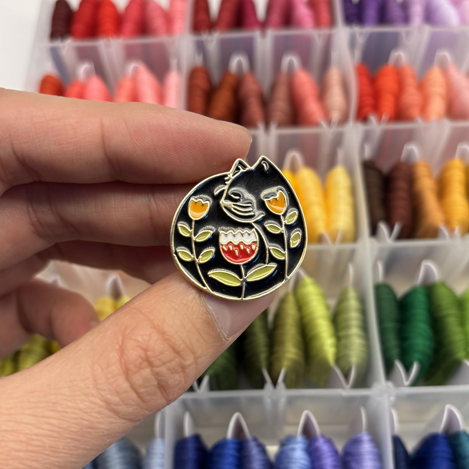 - 2️⃣ Easy to Use – Keeps Your Needle Safe & Accessible Simply attach the decorative enamel piece to the front of your fabric and the strong magnet behind. Your needle stays in place on top, making it easy to pick up and continue stitching without hassle.