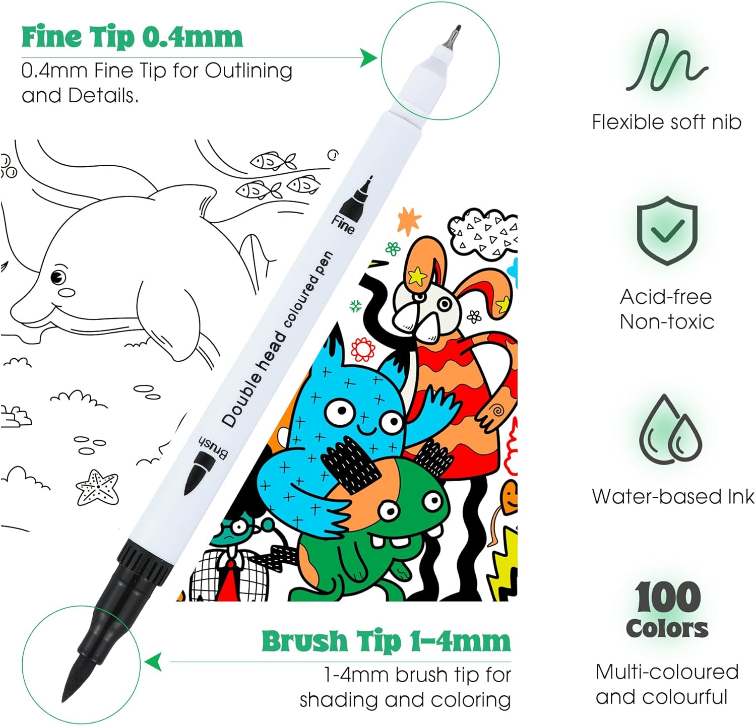 100 Colors Dual Brush Markers for Adult Kids Coloring Books, Water-Based Ink Art Marker Pens Set with Fine & Brush Tips for Bullet Journaling, Drawing, Hand Lettering, Sketching