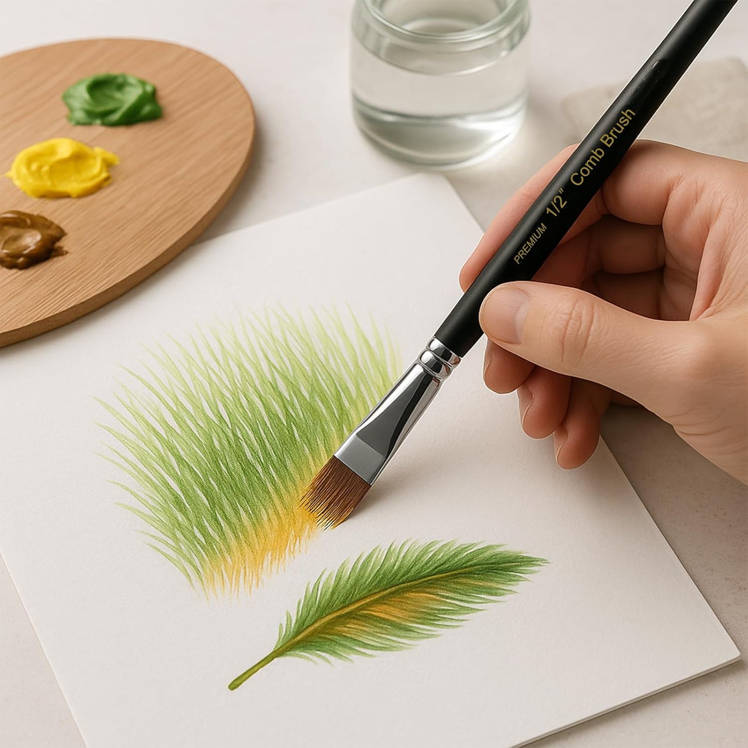- 【Professional Paint Brush Comb Set for Artists】 The GACDR Comb Brush set includes 4 premium comb-tip brushes in sizes 1/4", 3/8", 1/2", and 5/8", perfect for adding depth, texture, and movement to your artwork. Ideal for professionals and hobbyists seeking precision and versatility.