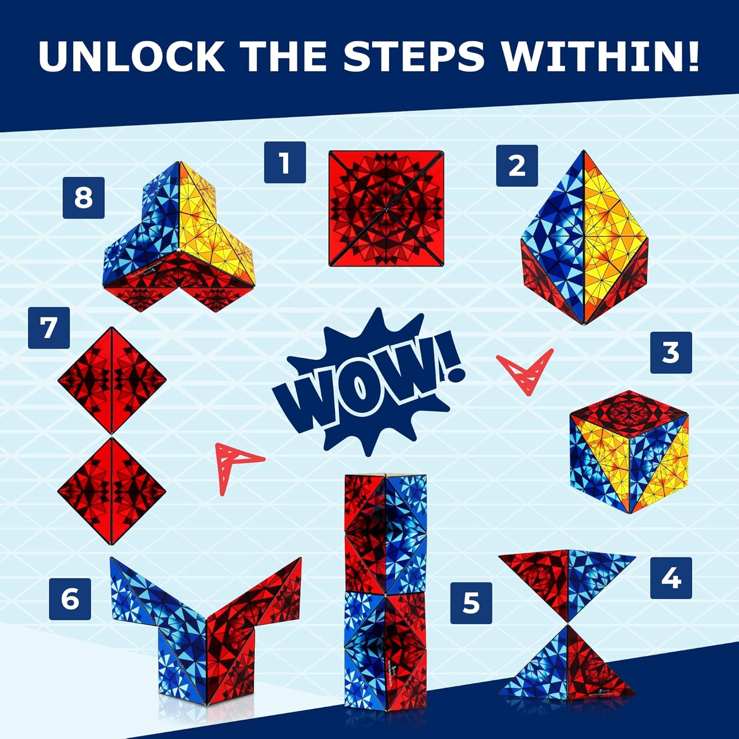 - Double the Cubes, Triple the Fun - Explore the Shashibo shape shifting magic cube world like never before! This magnetic puzzle cube features 72 rare earth magnets and transforms into over 70 magnetic shapes & 210 visual combos to expand the Shashibo Universe!