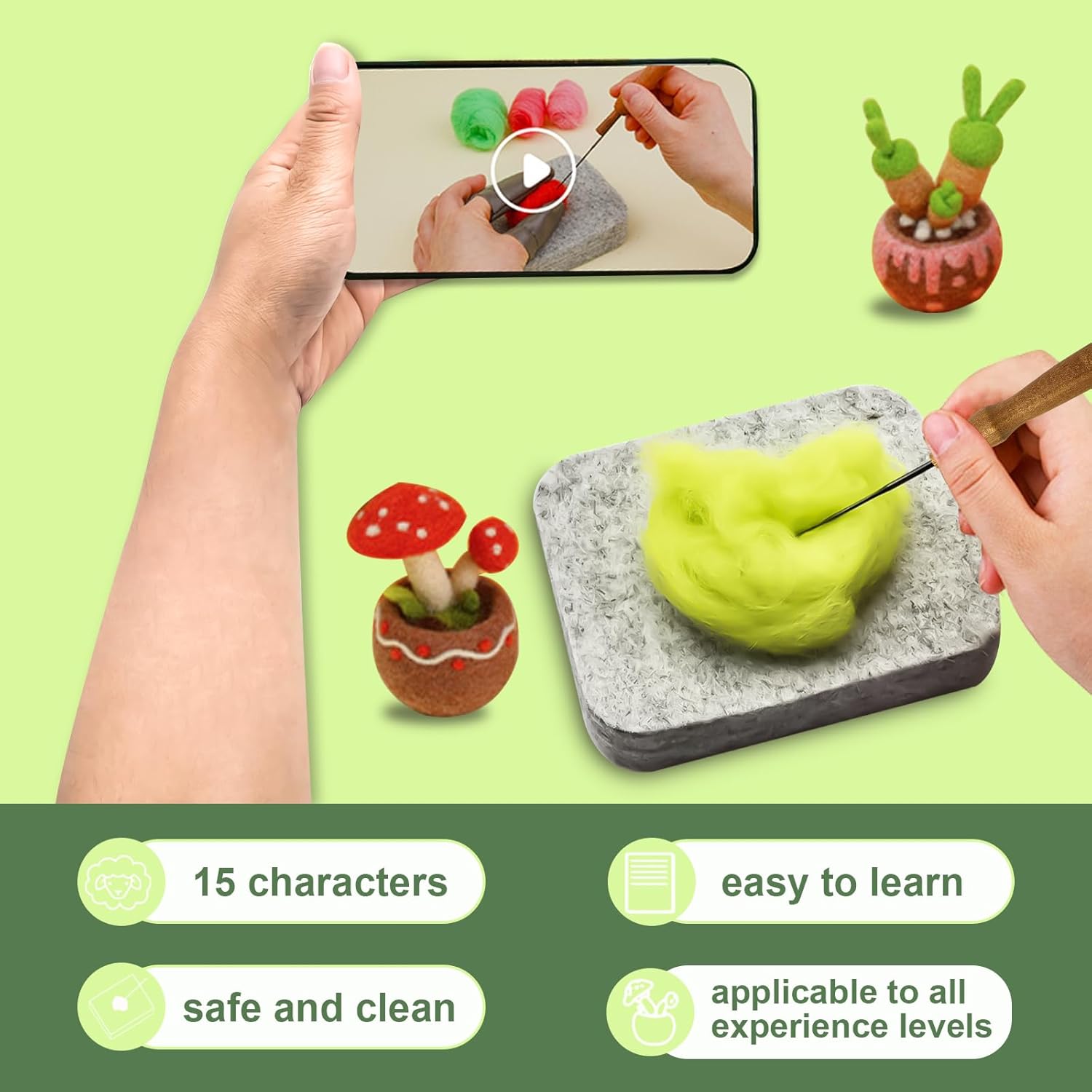 - BEGINNER FELT TOOL - The succulents felt kit comes with clear and easy-to-follow steps for each project for wool felt, and comfortable wooden handle, which let you are easy to install and remove, and gain confidence in your needle felting skills.