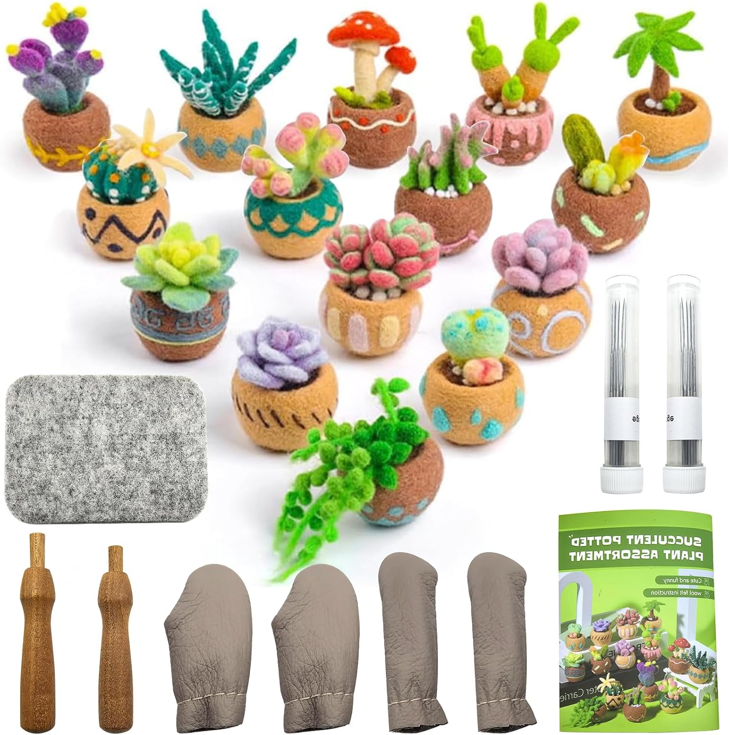 Jevuoyee 15pcs Succulent Needle Felting Kit for Beginners Adult - DIY Starter Kit with Wool Roving, Felting Mat, Needles, Instructions for Home Decoration Crafts