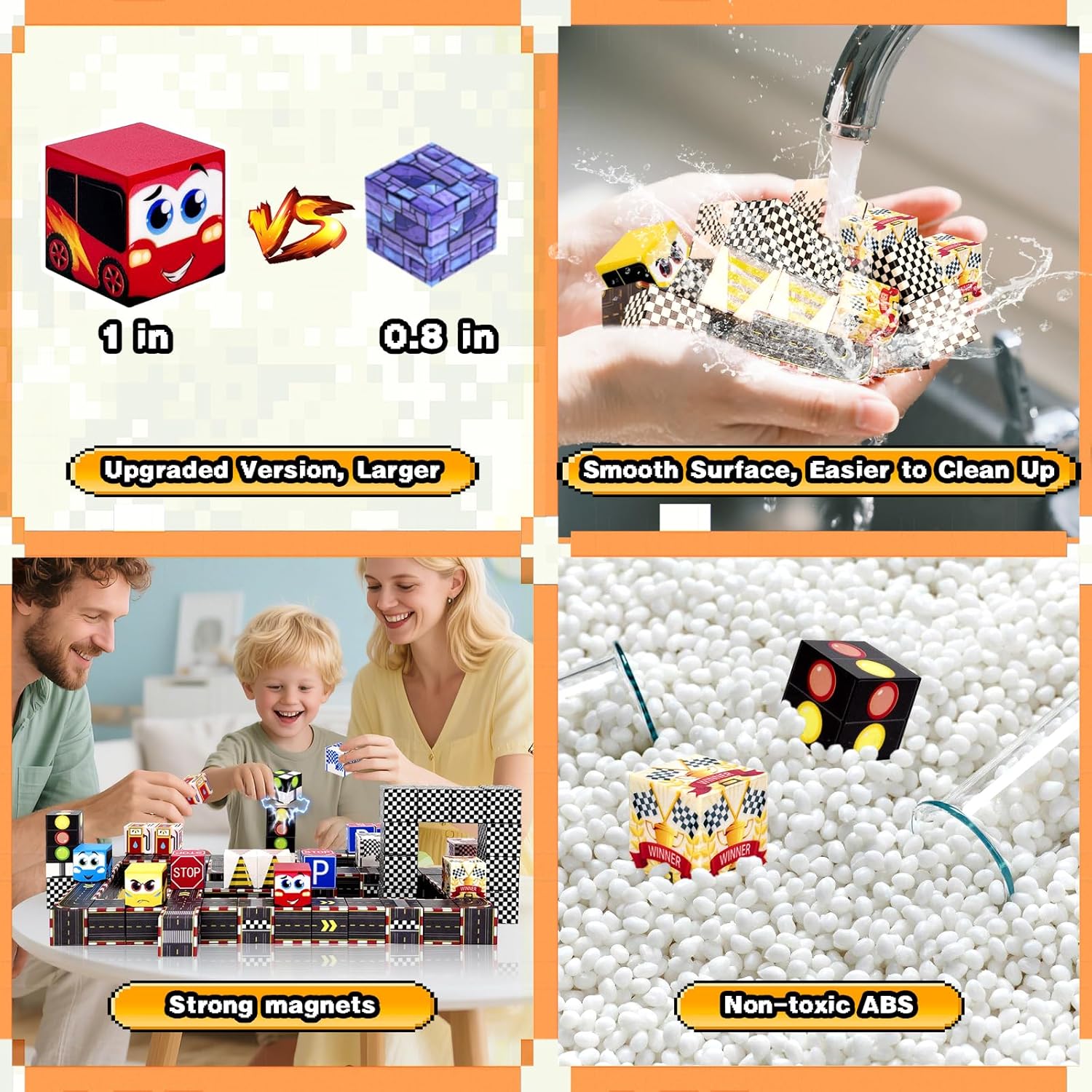 - 🛡️Safe and Child-Friendly Design: These magnetic blocks for kids ages 4-8 is made with food-grade ABS plastic and smooth, rounded edges to prevent scratches. Compared to traditional building toys that trap dirt, our magnet blocks are easy to clean with a glossy surface. Using UV printing technology, the colors of magnetic building cubes stay bright and vibrant far longer than ordinary sticker-based blocks. Fully safety-certified for worry-free play