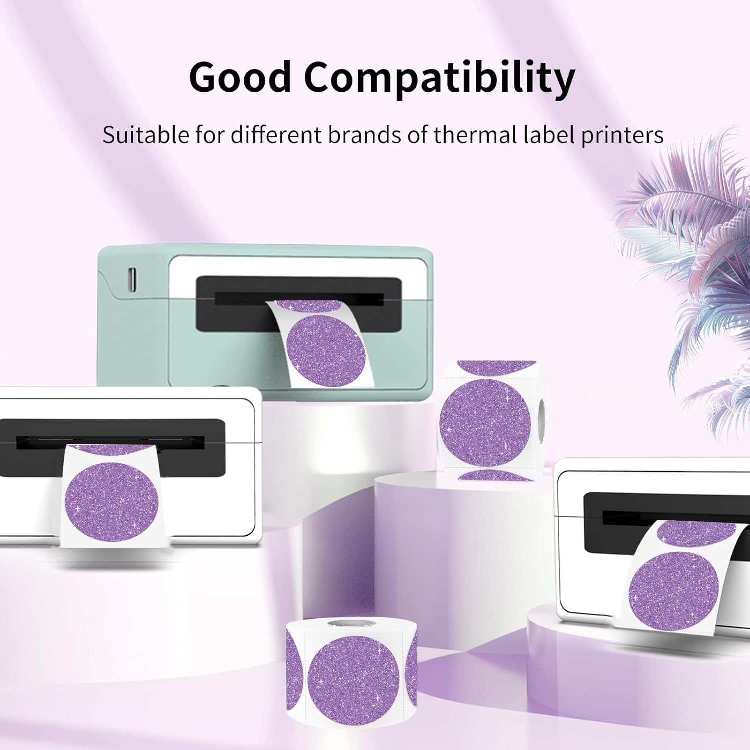 - 1.5" Circle Holographic Purple Thermal Labels Sticker, 350 Labels/Roll. It’s printable with a thermal printer, No ink toner or ribbons are needed