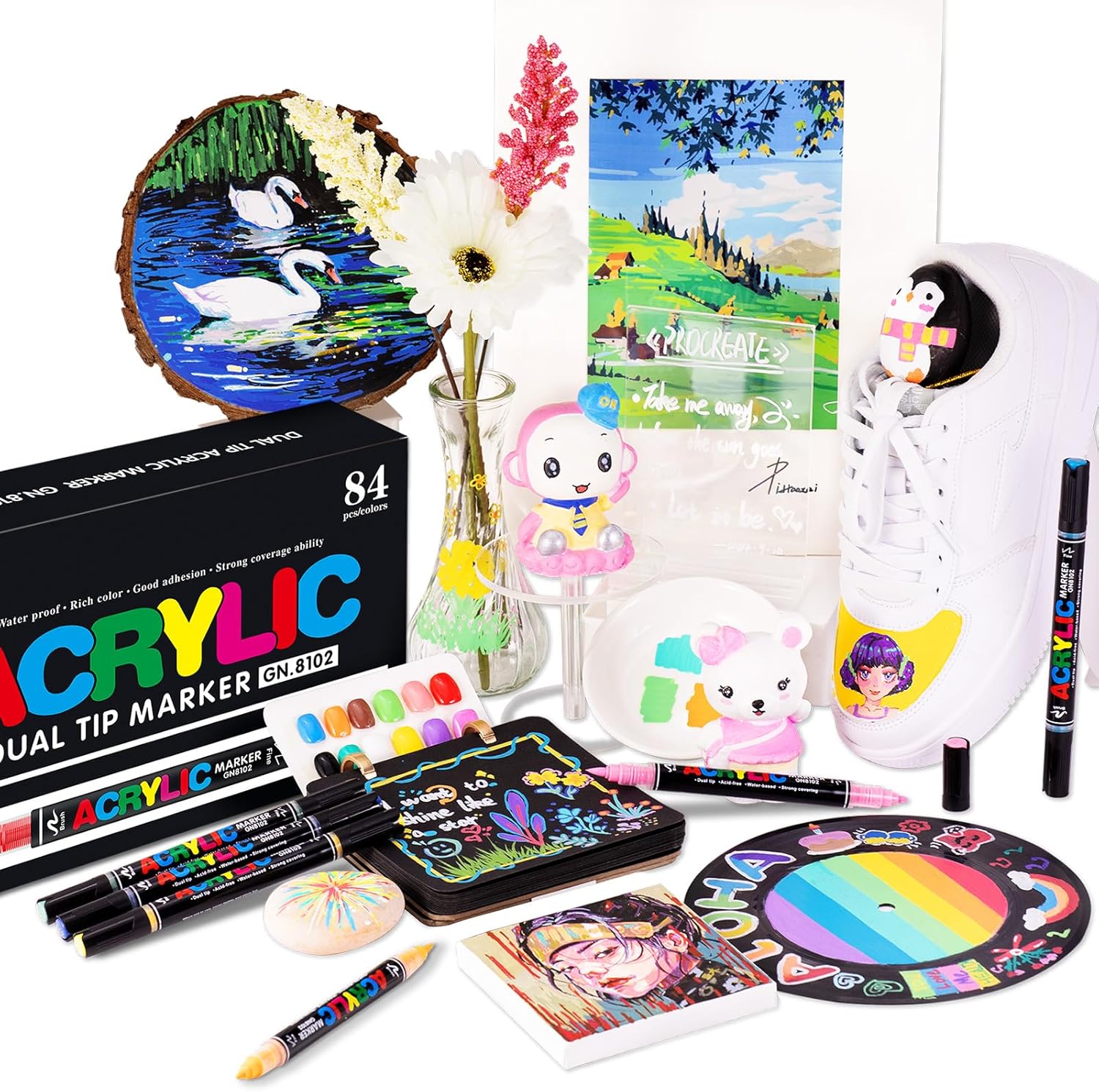 - 【Water-Based, Quick Drying & Waterproof】: Using safe, non-toxic water-based ink, these paint pens acrylic markers dry quickly to a waterproof finish that resists fading and smudging, making them perfect for long-lasting art on multiple materials.
