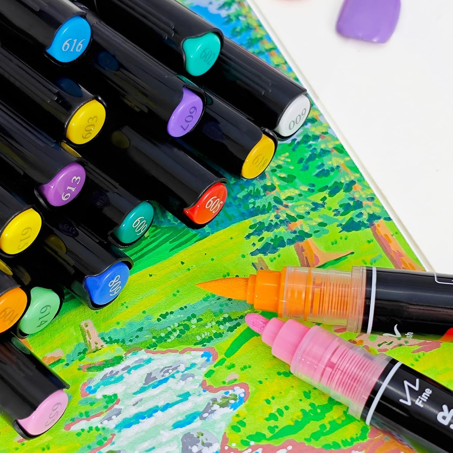 - 【Dual-Tip Design for Versatile Artistry】: Guangna acrylic paint markers feature a convenient dual tip design with a soft brush tip on one end for smooth broad strokes and a fine tip on the other for precise lines and detailed work. Perfect for artists, crafters, and hobbyists seeking creative flexibility.