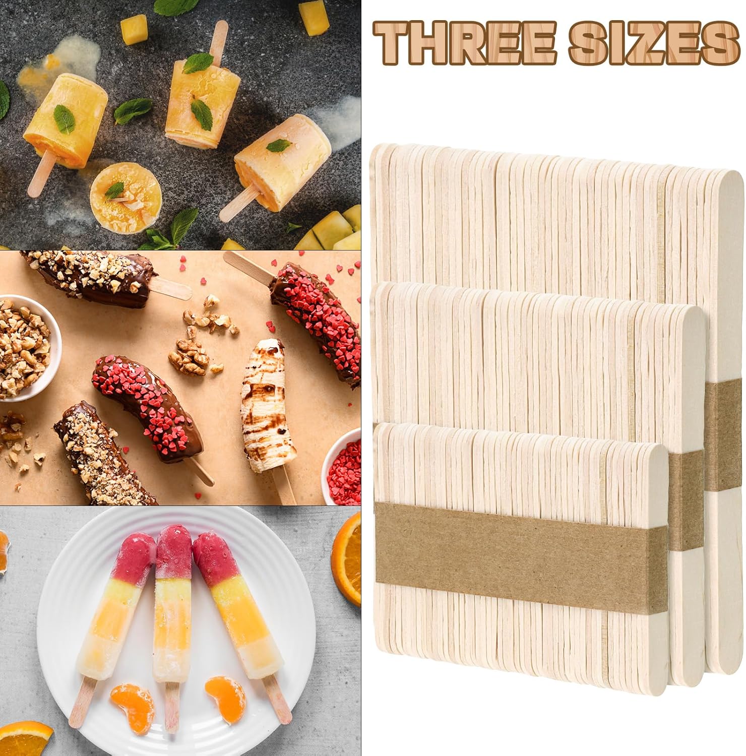- 3 SIZES STICKS: We provide three mixed-size natural wooden sticks: small (2.5 inches), medium (4.5 inches), and large (6 inches). These popsicle sticks are easy to use and have a wide range of uses. A sufficient quantity of popsicles can meet your needs for making various handicrafts.