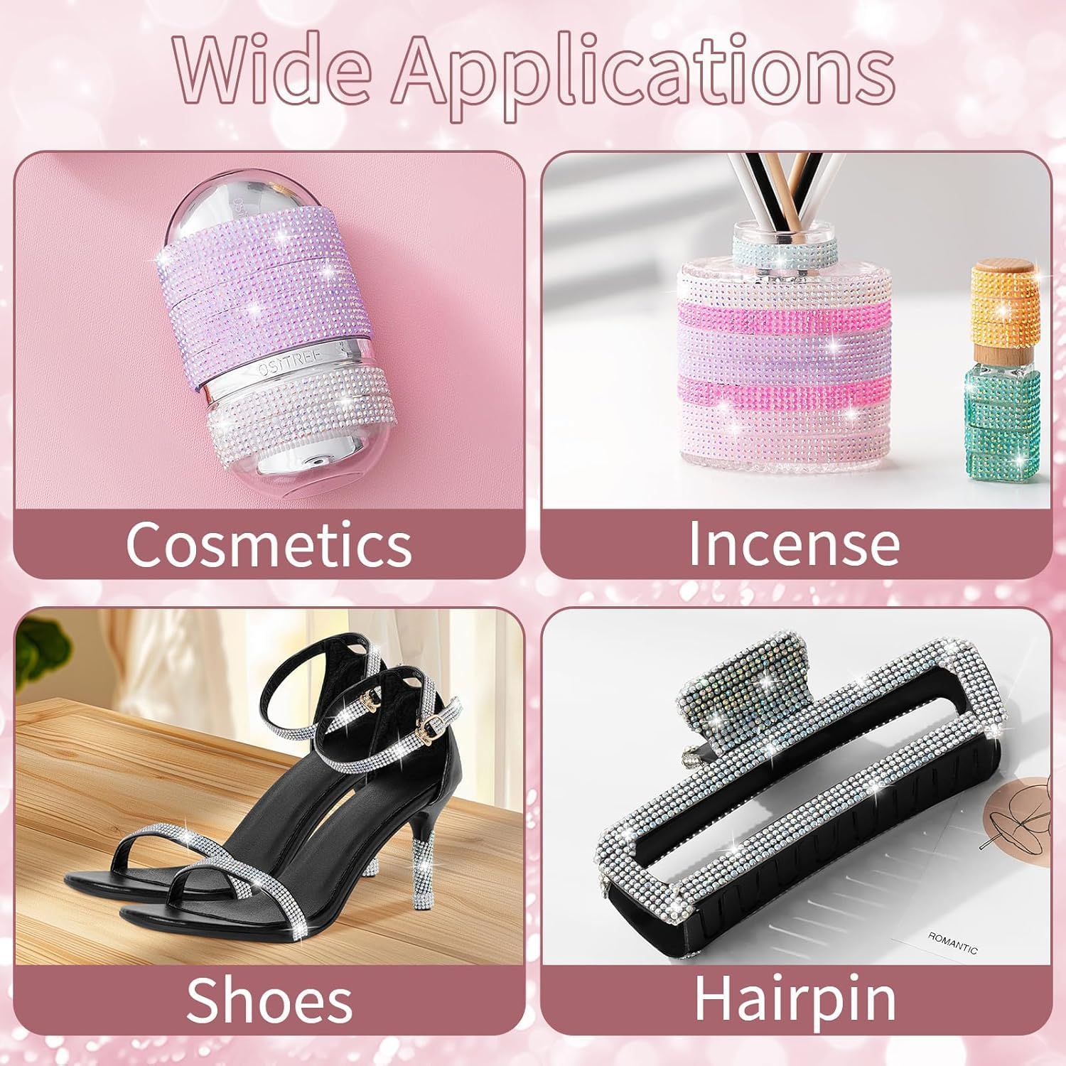- 【Easy to Use】The self-adhesive crystal strips can be trimmed into shapes and lengths according to your preference. Simply tear off the backing paper and press it onto the desired surface for a beautiful decorative effect. It only takes a few moments to put a little sparkle on ordinary, everyday items, and you'll absolutely love the moment!