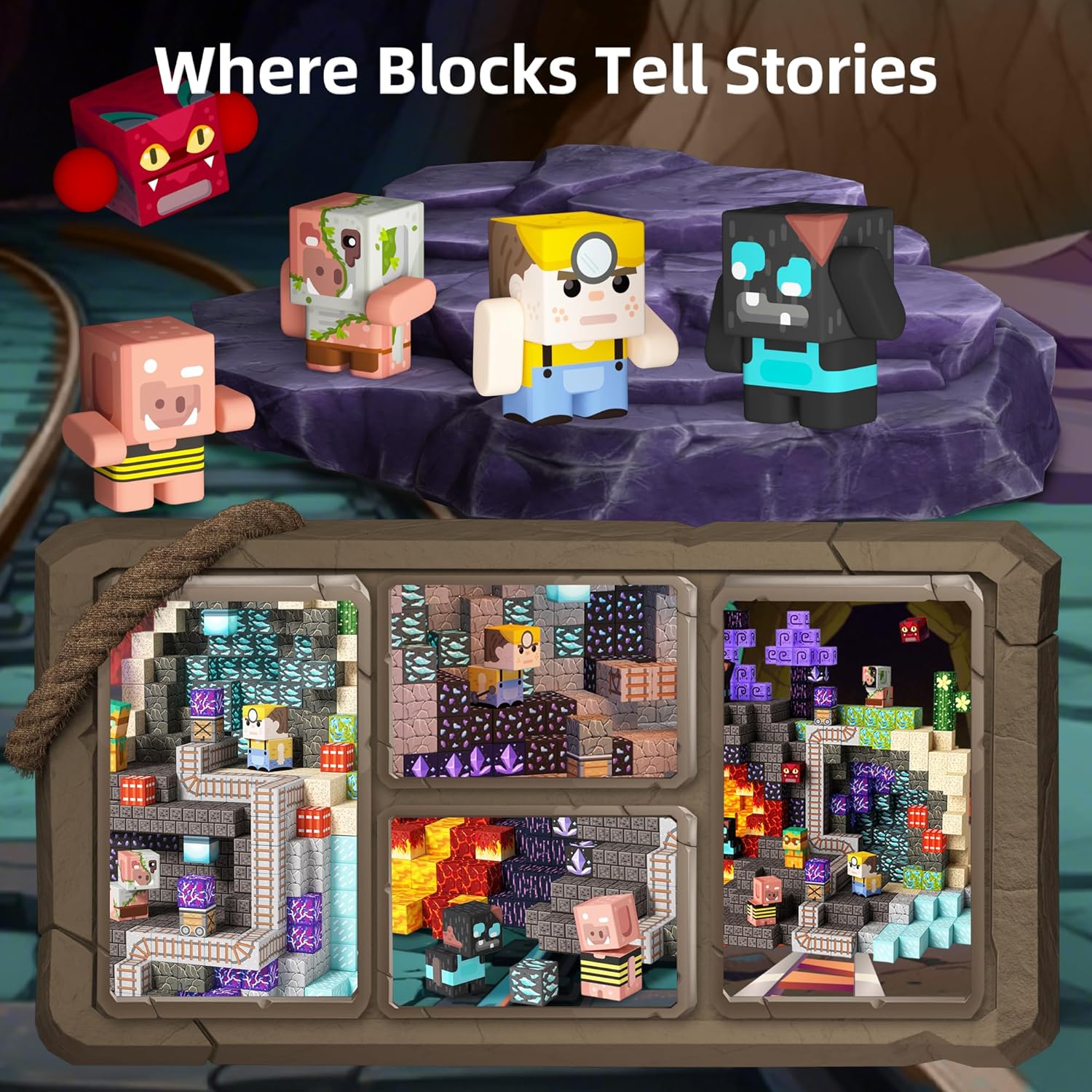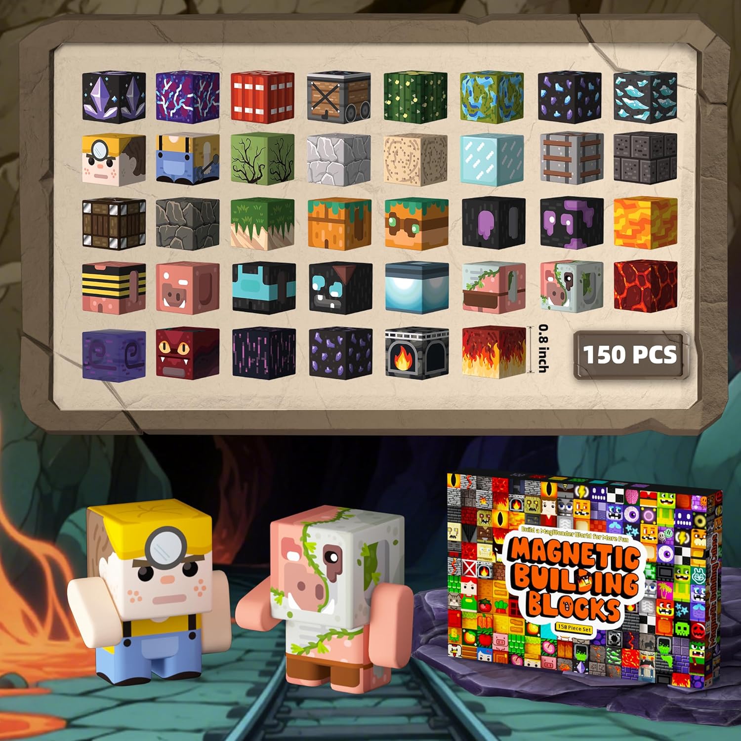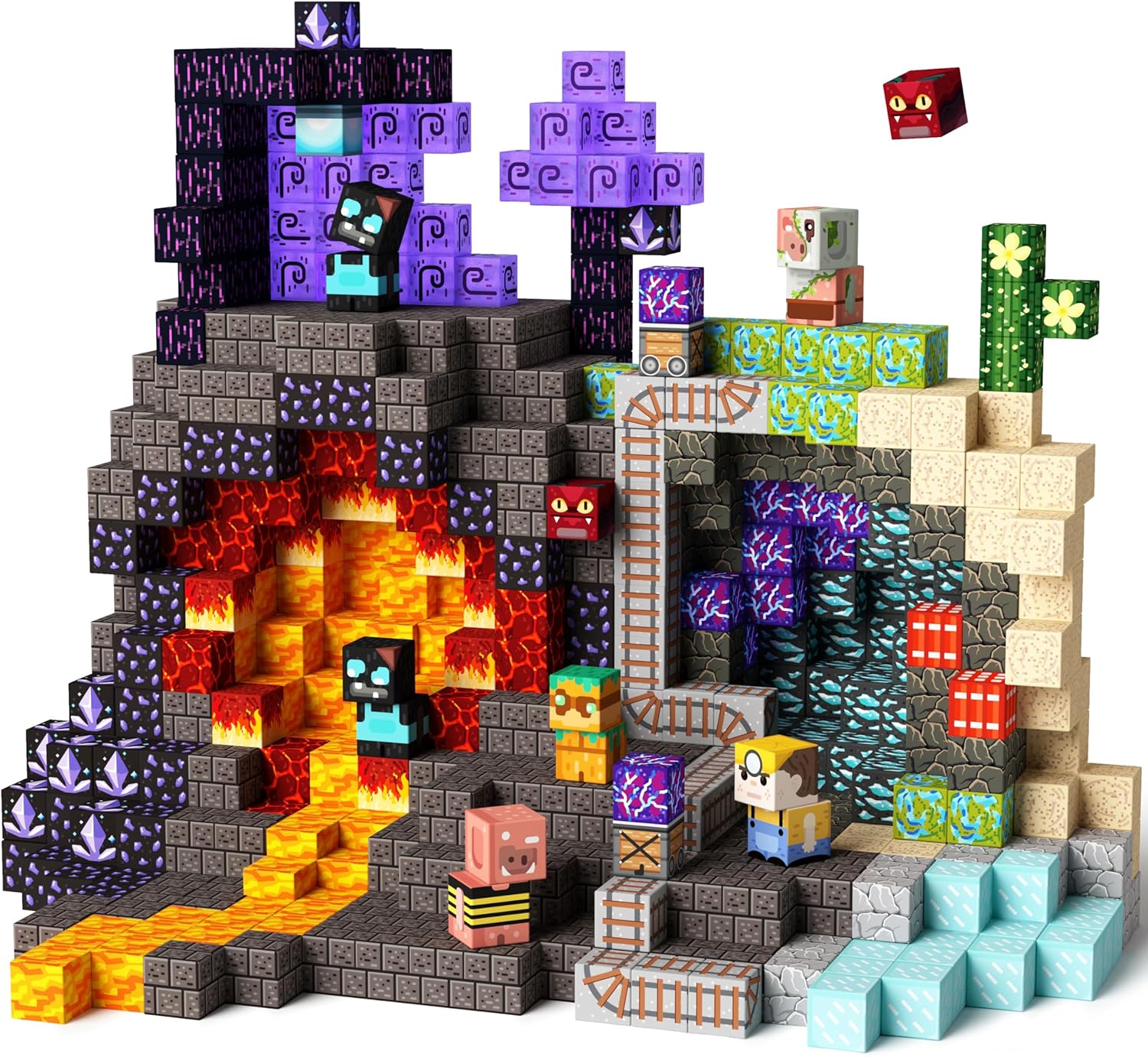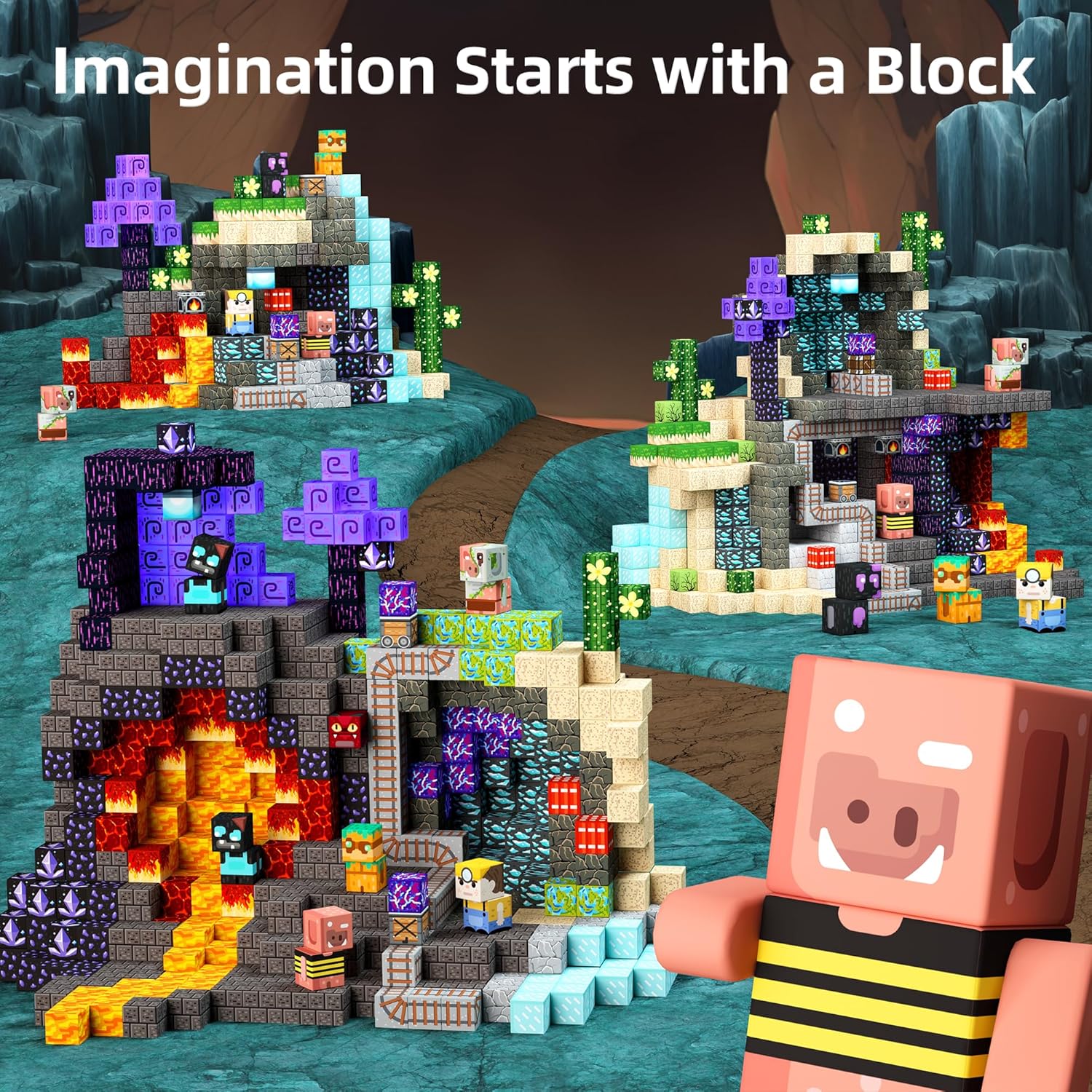 - Grotto Building Blocks Set: Stir imagination with 150pcs magnetic blocks. Kids can construct castle with colorful lava blocks, multi-textured mineral pieces, and adorable animal figures—igniting limitless creativity as they design glowing caverns, crystal-filled tunnels, and hidden treasure caves