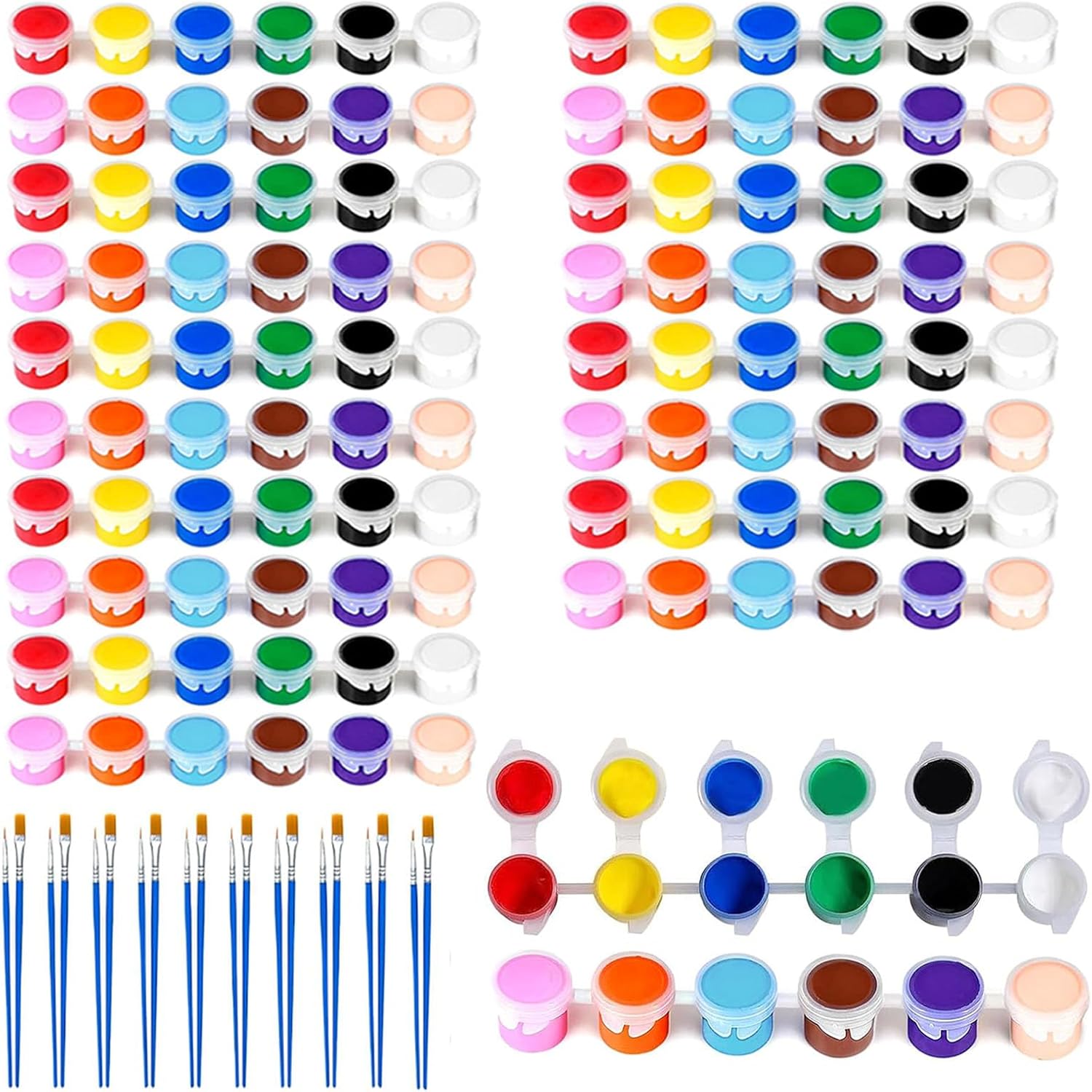 - PACKING LIST:Acrylic Paint Set contains 10 Pack Mini Acrylic Paint Set(120 Pcs Acrylic Paint +20 Brushes). 1 Pack Acrylic Paint set: includes 12 colors 3ML Mini ACRYLIC PAINT+2 Brushes.They are brightly colored, abundant in quantity, and can meet all your painting needs. Please wear an apron when using to avoid dirtying clothes.