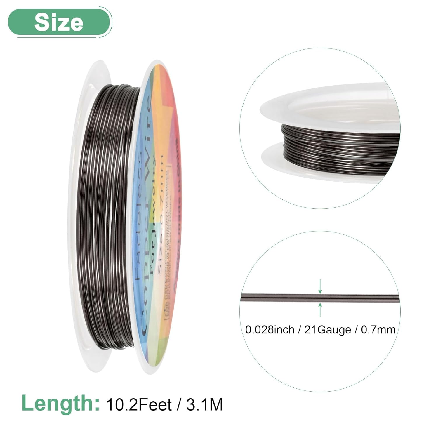 0.7 mm/21 Gauge Copper Wire for Jewelry Making, 10.2FT Copper Beading Craft Wire for Jewelry/Weaving/DIY Crafting/Planting, Color-Retaining [3.1M, Metallic Black]