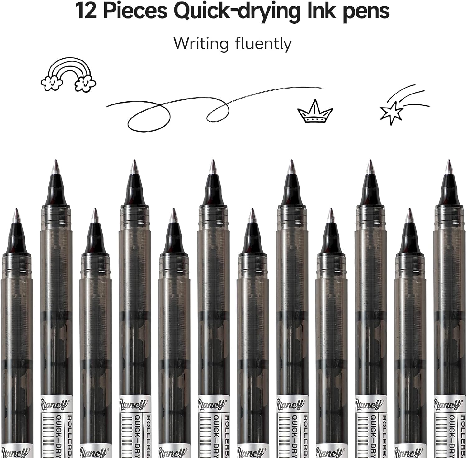 - RIANCY 12 Pack Quick - Drying Rollerball Pens: Smooth Writing Essential, Get 12pcs quick - drying ink pens with sleek rollerball tips! Delivers smooth writing for notes, journals, and school tasks—perfect for anyone needing reliable pens that won’t smudge. A top pick for “rollerball pens set” seekers.