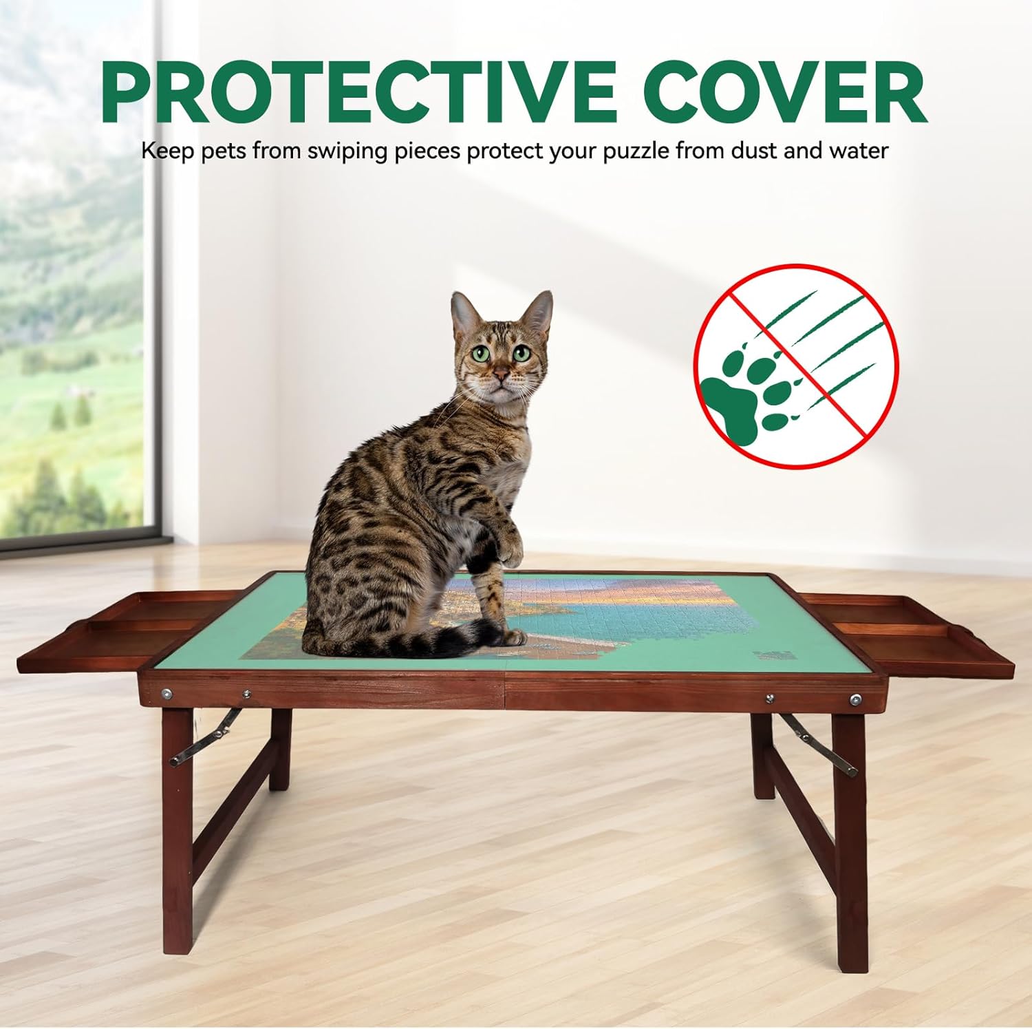- 【Included Protective Cover and Easy to Store】 The mat protects your puzzle from dust and curious pets, ensuring your puzzle remains undisturbed and protected between sessions, making your puzzling experience more enjoyable and organized.The puzzle board with legs is designed for easy storage and transport, allowing you to quickly move and stow your puzzle away.Simply cover your puzzle, close the drawers, and slide the board under the sofa or bed.